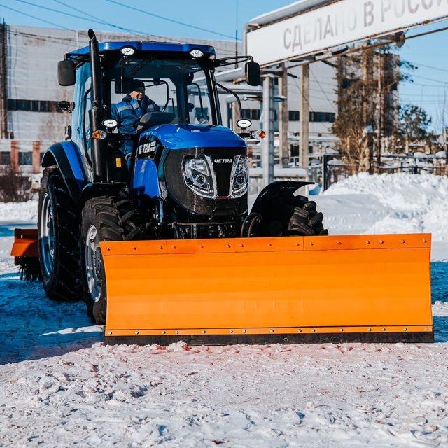 Базовое навесное оборудование - отвал коммунальный, предназначен для уборки улиц, дорог, площадей и других территорий от мусора, грязи и снега, а также для проведения легких планировочных работ на легких грунтах.